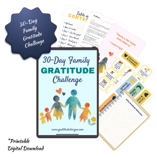 The 30-Day Family Gratitude Challenge is a simple, printable guide that helps you and your children develop a lasting habit of thankfulness — together.