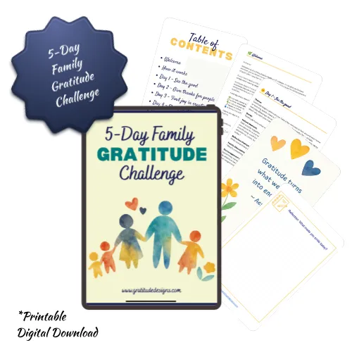 The 5-Day Family Gratitude Challenge helps you slow down, notice the good around you, and nurture thankfulness together — one small moment at a time.